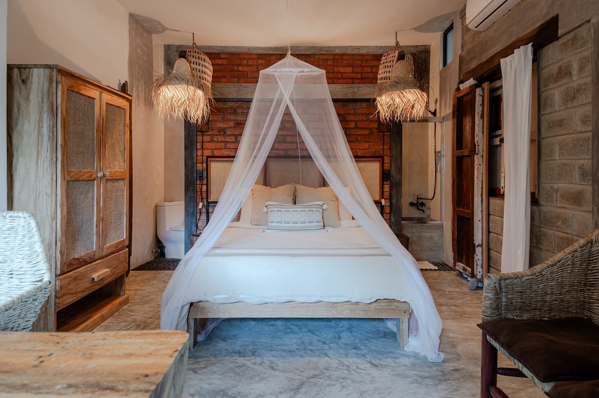 Loft RÚSTICO DE PALAPA AL AIRE LIBRE; vistas inmejorables; sin aire acondicionado ni pantallas; selva tropical. A 2 minutos caminando de una amplia y tranquila playa. Sillas de playa/sombrilla, Wifi, servicio de limpieza, caja fuerte, piscina de inmersión de jacuzzi compartida, cámaras de seguridad, LR, bar, cocina pequeña, bañera/ducha, segundo loft superior, gatos residentes. Dormitorio queen. Mosquitera, ventiladores, brisa marina, repelente de insectos. A 6 minutos a pie de playa o calle a restaurantes. Si es sensible a los insectos, considera la suite África de Calabaza con aire acondicionado, mosquiteros y puertas.