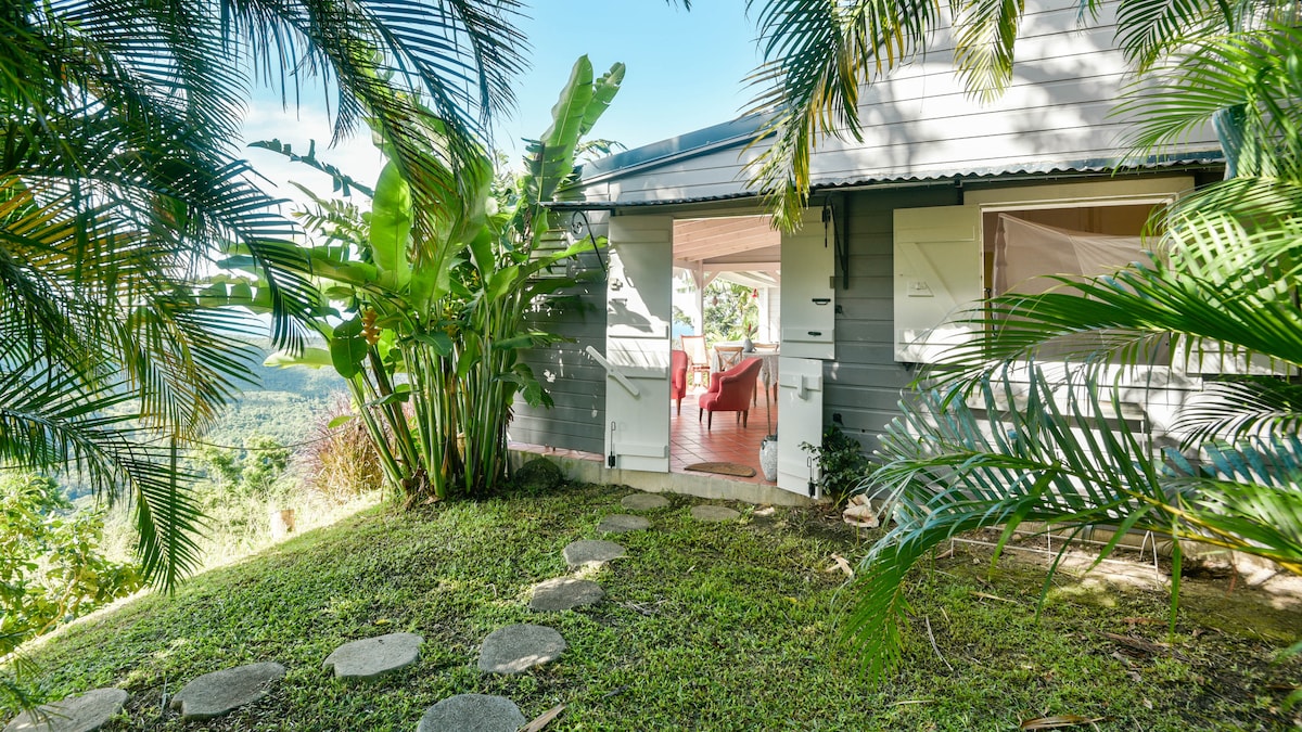 Recoja cada mañana plátanos y cerezas para su desayuno, en el exuberante jardín de esta magnífica casa rural abierta a la naturaleza. Muy cómoda y con aire acondicionado, cama king. En el jardín paisajístico se pueden observar colibríes... ¡Pequeña sorpresa, no te diremos más! Situada en el corazón del Parque Nacional de Guadalupe, declarado Patrimonio de la Humanidad por la Unesco, la casa le permite combinar el relax en la playa cercana y el descubrimiento de la selva tropical