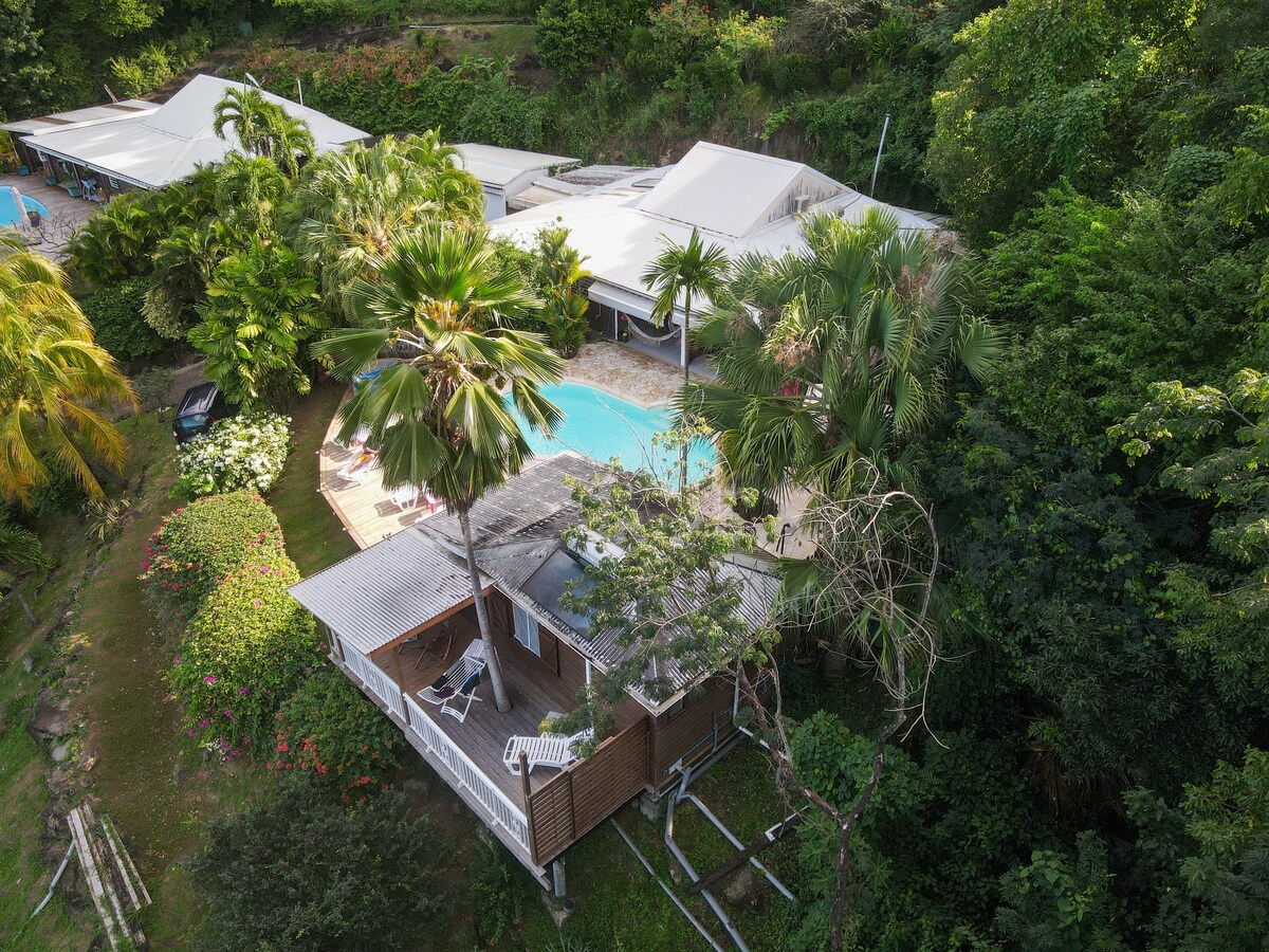 Kaz A Zot forma parte del sitio Les Terrasses d'Acomat. Chalet criollo con piscina privada, impresionantes vistas al mar, situado en un amplio jardín tropical. Aquí se sentirá como en casa, decorado con cuidado, ropa de cama de calidad. Pruebe la experiencia de vivir al aire libre, la naturaleza lo rodea, el canto de las ranas y el viento en las palmas de las manos acunan sus noches. Ideal para desconectar y reponer energías. Vivimos en el sitio y le daremos la bienvenida en persona. Nos vemos
