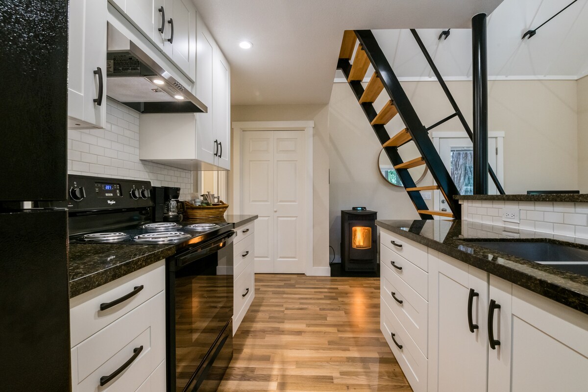 Número de permiso 231040 Cabina privada en un entorno sereno y boscoso, a 20 minutos de Santa Cruz. La casa principal tiene dos dormitorios y un loft. Jacuzzi, ducha al aire libre, cocina al aire libre, barbacoa de gas, terraza grande, vistas. El interior tiene una cocina moderna y bien equipada, gran habitación, chimenea de gas, loft, dormitorio principal, dormitorio de invitados, dos baños. Ya no se me permite alquilar las dos ADU. Muebles de calidad, camas cómodas, elegante mesa de comedor grande y seccional.
