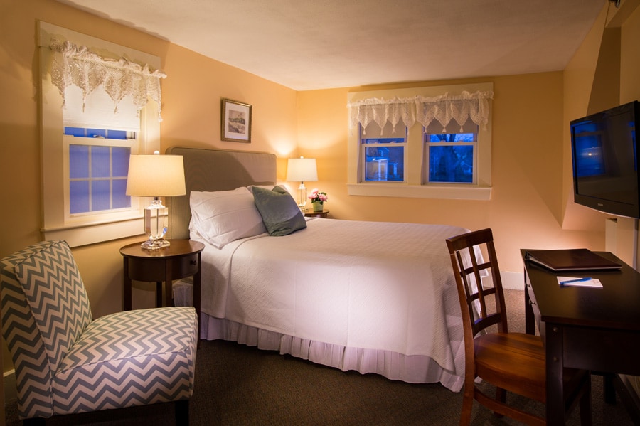 Ubicadas en el segundo y tercer piso del Main Inn, las habitaciones Country Inn son bastante pequeñas pero elegantemente decoradas. Todas las habitaciones están decoradas individualmente con (1) cama queen, baños privados con ducha y servicios estándar. Estas habitaciones tienen baños pequeños y buhardillas sobre las camas/ventanas. Las habitaciones incluyen nuestro desayuno buffet y wifi. No hay vistas al mar, pero la playa está a pocos pasos. *No apto para cunas o cunas de viaje, máximo 2 huéspedes * **Ten en cuenta que NO hay ASCENSORES en ninguno de nuestros edificios.
