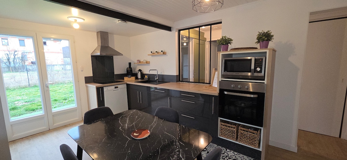 ¿Quiere descubrir la cadena de los Puys mientras disfruta de la animación de Clermont-Ferrand? «Entre Ville et Vignes» es el punto de partida ideal para combinar naturaleza, cultura, relajación… e incluso una estancia profesional exitosa. Situada en el corazón de Romagnat, a las puertas de Clermont-Ferrand y cerca de las principales carreteras, esta casa adosada de 80 m², situada en un antiguo barrio obrero de Michelin, ha sido completamente renovada para ofrecer un entorno cálido y relajante.