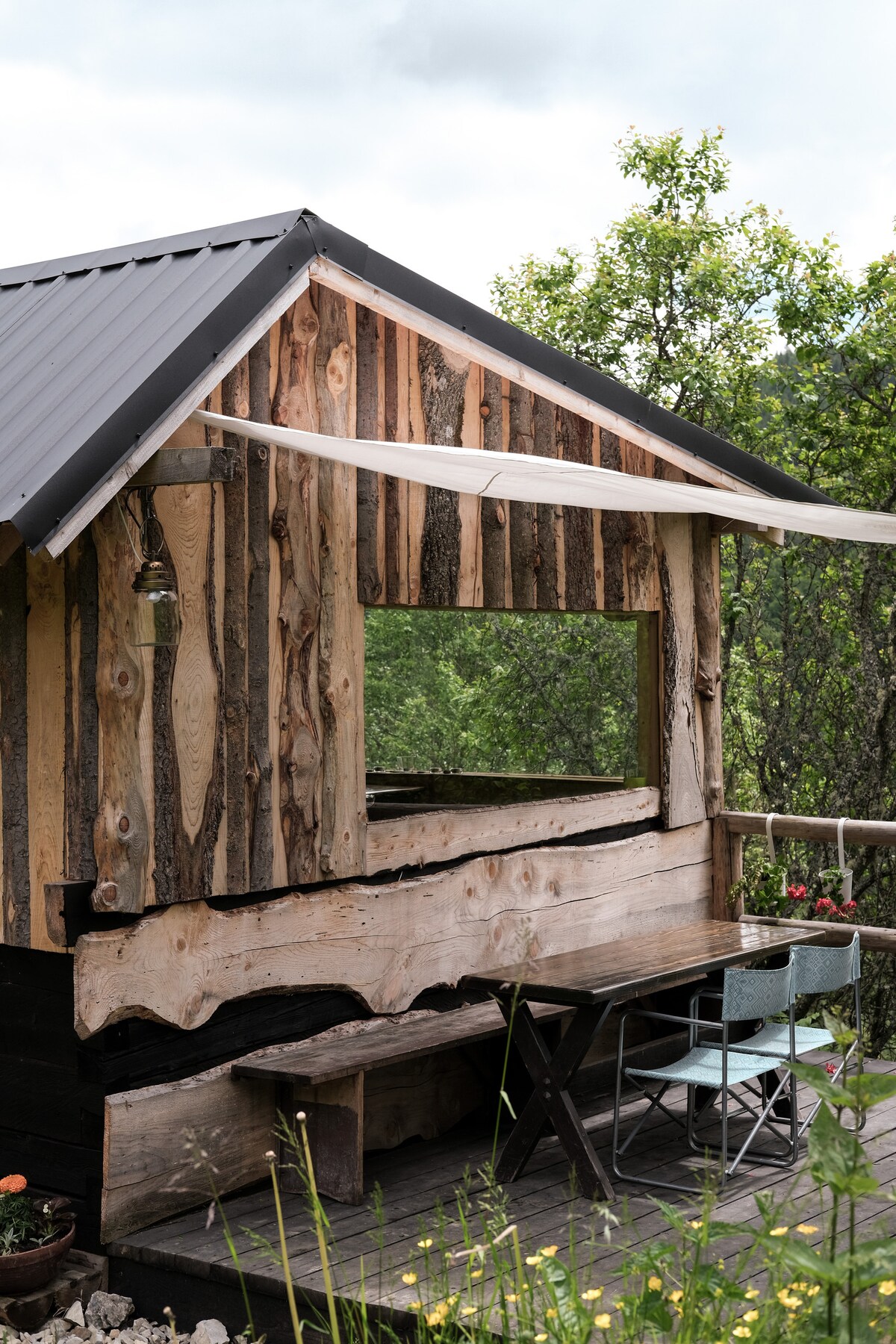 La casa natural, escondida dentro de la ladera de la montaña,se encuentra en un paisaje de cuento de hadas. ¡Experiencia auténtica!La ubicación de unas 5 hectáreas te invita a relajarte, descansar y volver a conectar con la naturaleza. La cabaña, fresca en verano y cálida en invierno,está diseñada para garantizar una comodidad óptima en cualquier temporada. Con sus 30 metros cuadrados, baño privado, cama doble,una estufa de leña y una generosa terraza, proporciona una estancia verdaderamente única. La ZONA DE FUMADORES está lejos de las casas. La cocina al aire libre se comparte entre las dos casas.