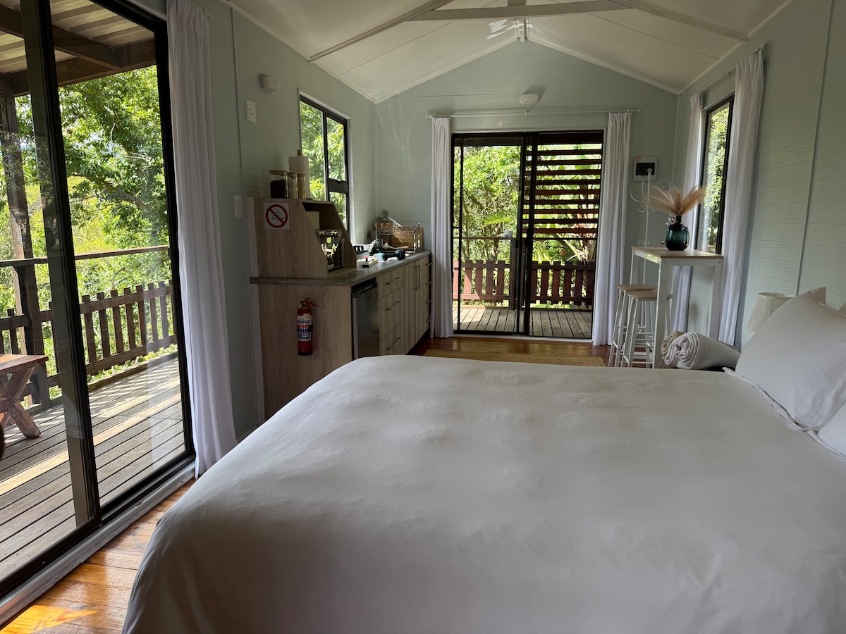The Tuffet is an elegant studio ideal for couples seeking a romantic oasis in the beauty of the Garden Route. With a private wood-fired hot tub overlooking idyllic views of the lake and mountains, this stylish, secluded space has all the simple luxuries needed to rest in nature. Pet-friendly and off the grid with air con, Wi-Fi, TV, Amazon Prime and all the essentials. Relax and reconnect with each other. Enjoy our farm trails, shared pool with stunning views, and the neighbouring national park.