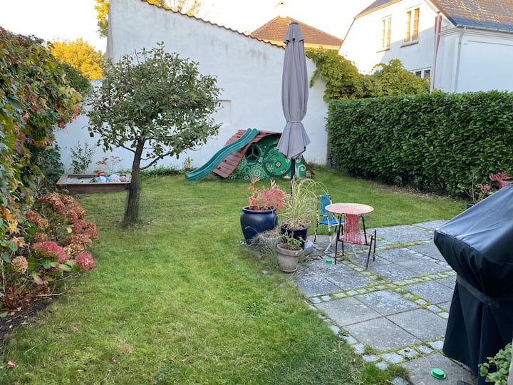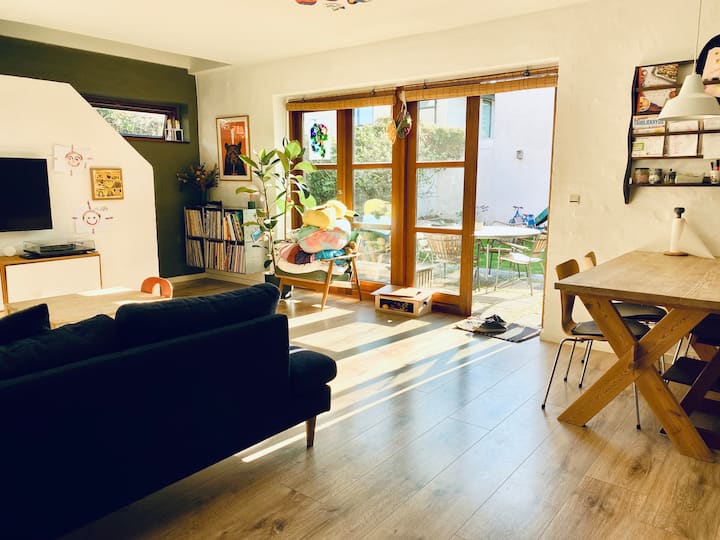 Acogedora casa adosada con jardín privado cerca de la playa y la ciudad