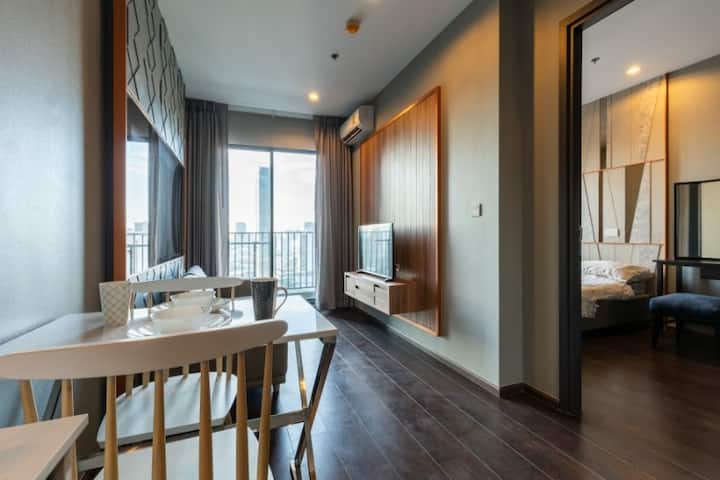 El departamento está ubicado en E Ekkamai-Thong Lo, una famosa zona residencial relacionada con el extranjero en Bangkok. Es un apartamento residencial de alta gama de 45 pisos recién completado. Es el edificio más alto del área. Tiene vistas al hermoso paisaje de la ciudad circundante y hace que la noche sea más hermosa.