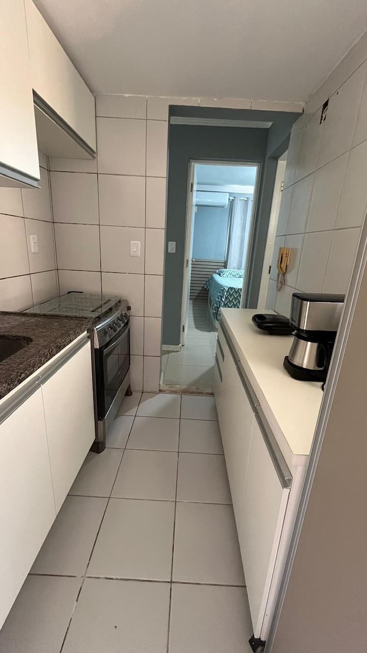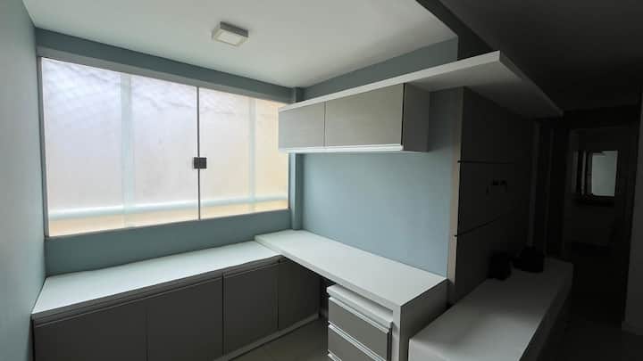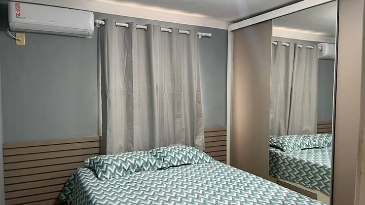 Moderno apartamento con aire acondicionado, Wi-Fi, cocina y estacionamiento.