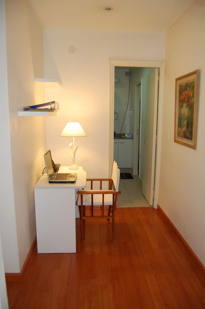Una habitación con wifi apta para trabajar.