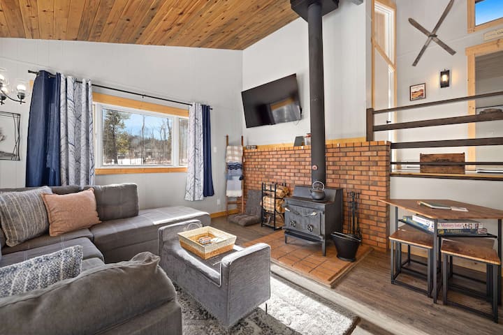 Grizzly Peak Getaway es una escapada rústica exclusiva de Montana, perfecta durante todo el año. Ubicada en el bosque a las afueras de Red Lodge, esta acogedora cabaña te invita a relajarte junto al fuego y disfrutar de la vida en la montaña. La casa de tres dormitorios y dos baños es apta para niños con un loft dedicado y apta para perros para un máximo de dos perros, con una perrera al aire libre.
