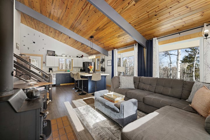 La cabaña se ha actualizado recientemente con muebles nuevos, acabados de madera y una cocina totalmente renovada con electrodomésticos nuevos y encimeras de hormigón personalizadas. Mientras que Red Lodge ofrece excelentes opciones gastronómicas, la cocina está totalmente equipada para comidas caseras y hay una parrilla disponible en la terraza.