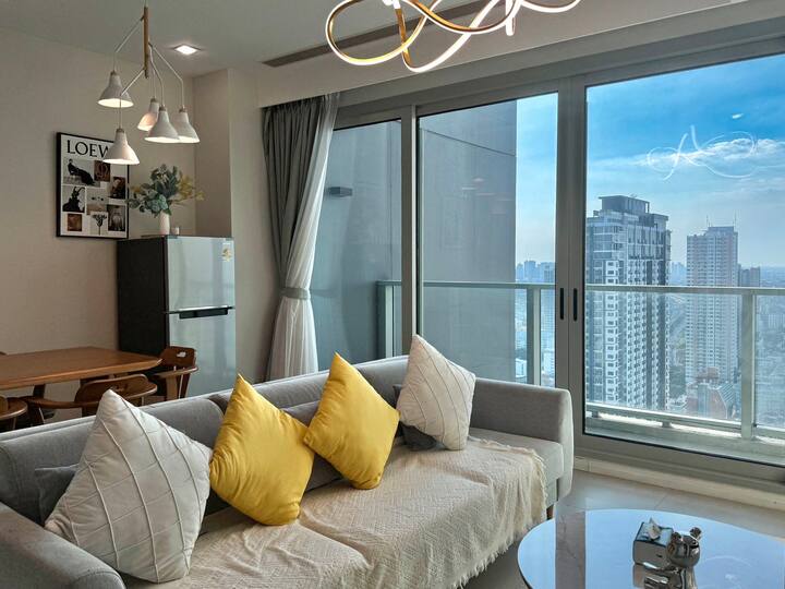 Casa de lujo junto a Iconsiam, habitación grande de 70 pies cuadrados con bañera, wifi de alta velocidad, vista al río Mekong, piscina y gimnasio