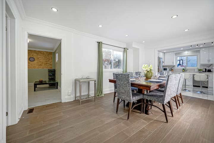 ✨ Ideal para familias, grupos o viajeros de negocios, esta espaciosa casa de 5 dormitorios y 6 baños de Markham combina comodidad y conveniencia. Disfruta de una cocina totalmente surtida, conexión Wi-Fi de alta velocidad y un espacio de trabajo dedicado. Cada dormitorio cuenta con camas acogedoras y un montón de espacio de almacenamiento. Relájate en el patio o en el patio trasero compartido. Cuna y estacionamiento gratuito en el alojamiento incluidos. Ubicado en un barrio tranquilo cerca de parques, tiendas y autopistas principales, ¡tu hogar perfecto lejos de casa!