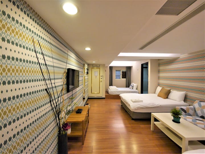 ¡Aldea de Ximending, Taipei!(Ascensor/baño privado ~ 2 camas dobles y 1 cama individual ~ No fumar)!