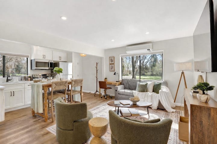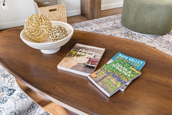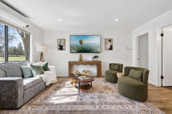 Bienvenido a tu acogedor refugio en Napa: una elegante casa de 2 dormitorios recién amueblada en un vecindario tranquilo, a pocos pasos del centro de Napa. Disfruta de un fácil acceso a excelentes restaurantes, cafeterías, boutiques, al mercado público Oxbow y a los lugares favoritos de la zona, y luego regresa a un espacio cómodo diseñado para relajarte después de un día de cata de vinos o de exploración. Base fácil para bodegas, fines de semana BottleRock y escapadas de primavera en temporada de mostaza.