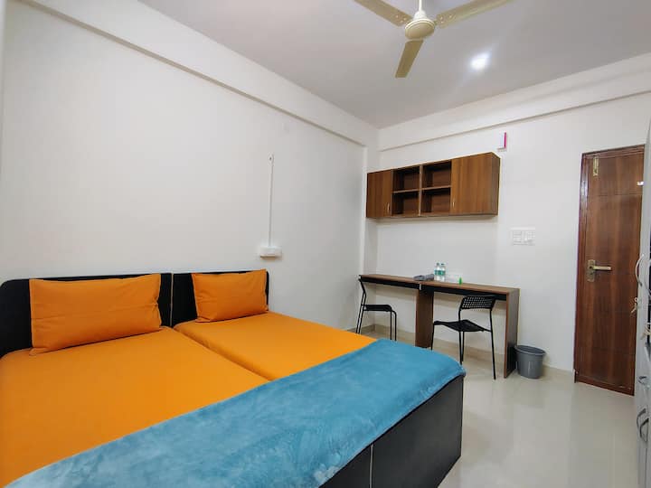 Nota importante para todos los huéspedes - 1. Es una habitación privada con un baño adjunto. 2. Cada huésped debe proporcionar una tarjeta de identificación válida (Aadhar, Voter, Passport, Visa o DL) antes del check-in en la recepción y la edad debe ser de 21 años o más 3. NO hay opción de llegada autónoma disponible. El capitán de la propiedad estará en la recepción para un registro de entrada sin complicaciones. 4. El check-in anticipado y el check-out tardío se proporcionarán solo con la aprobación del anfitrión. El huésped tiene que ponerse en contacto con el anfitrión antes de reservar en el chat de Airbnb para obtener la aprobación de la llegada anticipada y la salida después de la hora establecida. Si el anfitrión lo permite, entonces solo está permitido y es de pago. 5. Las reservaciones internacionales no están disponibles temporalmente. Disculpa por las molestias.