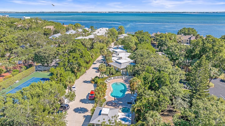 Joya escondida en Beach Castle Resort en Longboat Key. Los únicos 3 dormitorios, 3 baños con dos espacios de estacionamiento privado. Vistas directas a la bahía con ventanas del piso al techo. Nuevo muelle de pesca con embarcaderos. Acceso privado a la playa con tumbonas, sombrillas, ducha al aire libre, parrilla y mesa para disfrutar de una comida al atardecer.