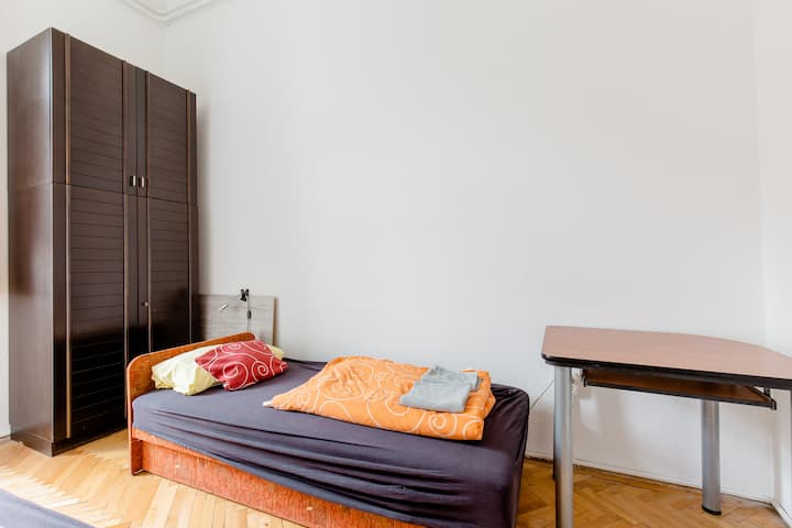 Una habitación solo para ti en un alojamiento, con acceso a áreas compartidas.