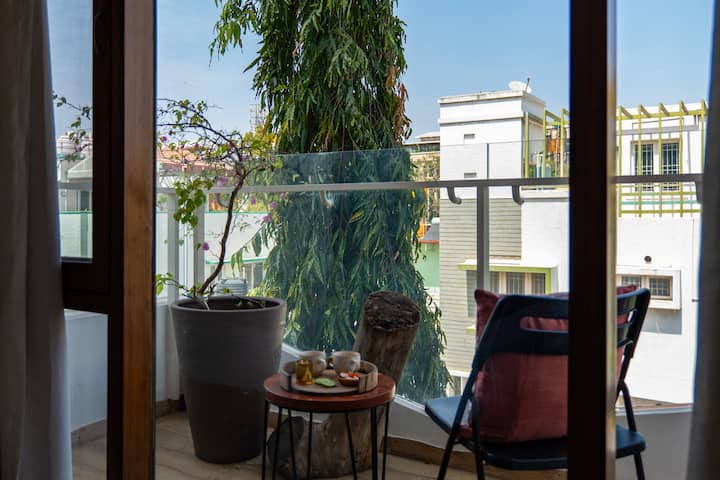 Te damos la bienvenida a Kammanhattan, donde la energía global se encuentra con el confort refinado. Este elegante refugio de 3 BHK en Kammanahalli combina vidrio, madera, metal y texturas terrosas en un santuario cálido y moderno. Las habitaciones iluminadas por el sol, los balcones privados y un lujoso espacio habitable crean el entorno perfecto para relajarse. Rodeado de vibrantes cafés, pubs y cocina mundial, pero escondido en una tranquila privacidad, es tu elegante dirección en el barrio más cosmopolita de Bengaluru.