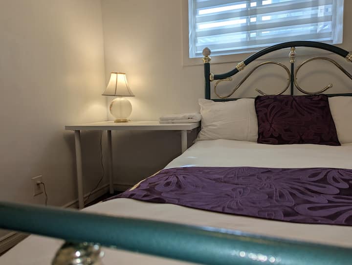 Barrio tranquilo y seguro en el noroeste de Calgary, cerca del aeropuerto YYC. A solo 15 minutos en coche del aeropuerto YYC, incluso en autobús BRT 300, acceso rápido a Deerfoot (autopista 2), a 18 minutos en coche del centro comercial Cross Iron Mills, a 15 minutos en coche del centro de Calgary. Cocina/sala de estar compartida, pero los huéspedes tienen su propio dormitorio privado y baño en un nivel separado (el primer nivel). Puede ser conectado por chino(mandarín)o/ambos ingleses con fluidez.