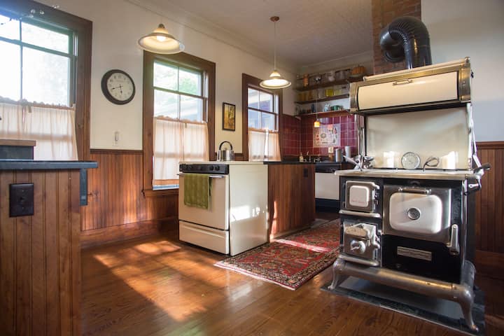 La casa está amueblada con algunas antigüedades encantadoras y algunas tiendas de segunda mano. Varios toques finales únicos y europeos, por favor, huéspedes. Nos lo pasamos muy bien transformando la casa en bastantes (a veces se sentía como demasiados) años.