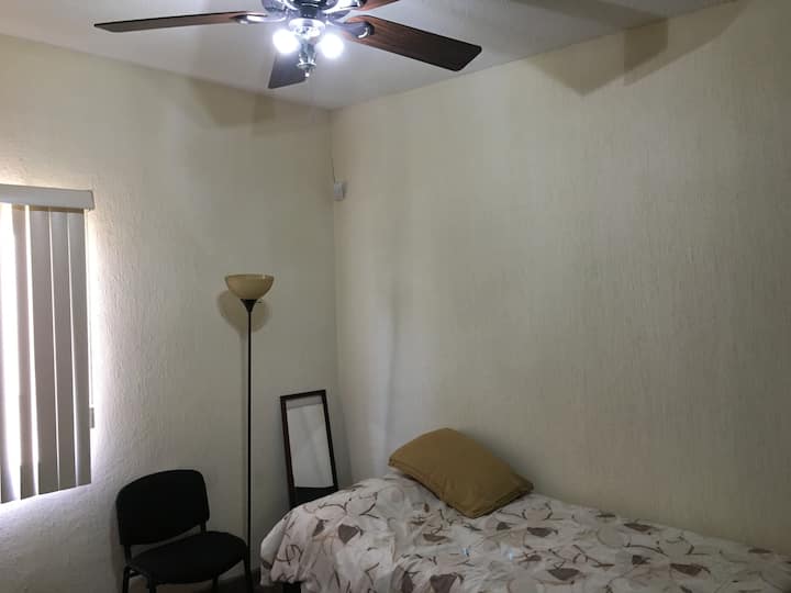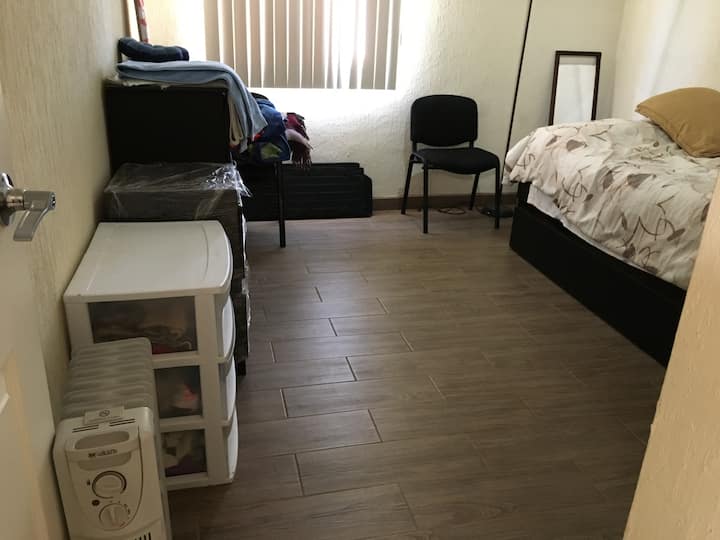 Una habitación solo para ti en un alojamiento, con acceso a áreas compartidas.