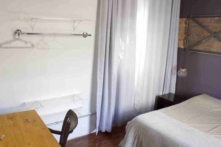 Una habitación solo para ti en un alojamiento, con acceso a áreas compartidas.