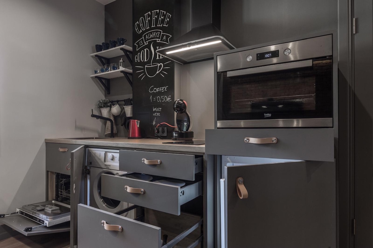 Este moderno apartamento de 1 dormitorio (46 m²) es el lugar perfecto para los viajeros que buscan comodidad y conveniencia. Ubicado en un barrio tranquilo a poca distancia del centro de la ciudad, el apartamento tiene todo lo que necesitas: una cocina totalmente equipada, una sala de estar, una cómoda cama y mucha luz natural.