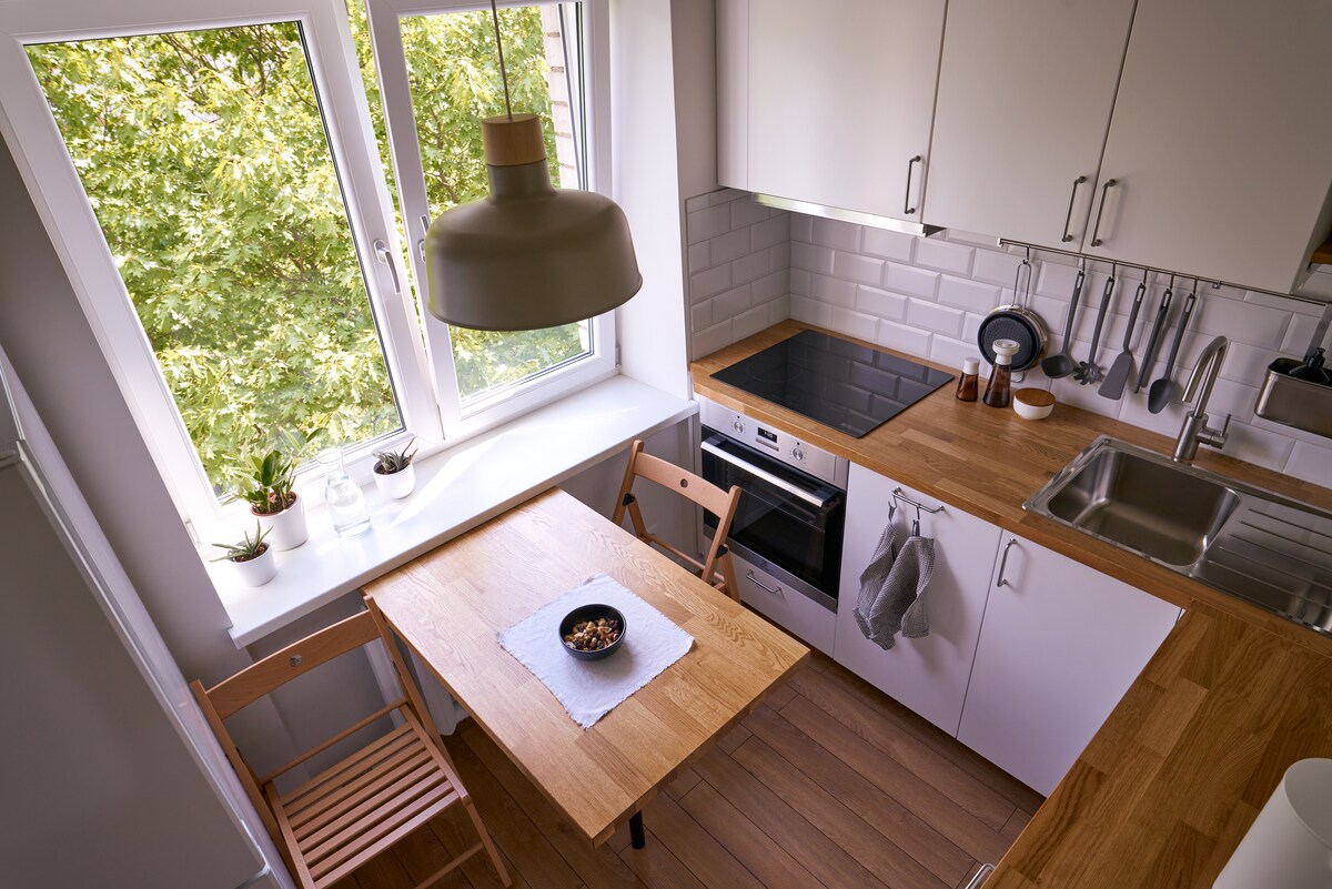 Acogedor apartamento de 2 habitaciones con un cálido estilo escandinavo. Con todo lo que necesitas, una pequeña cocina completamente equipada. Baño privado con ducha, lavadora y secadora de pelo. Wifi rápido para trabajar y relajarse. Ideal para parejas, tiene capacidad para 4 adultos y 1 niño. Estacionamiento gratuito. Barrio tranquilo y silencioso para relajarse del ajetreo de la ciudad, a 5-7 minutos a pie del transporte público y las tiendas. El centro de la ciudad está a 20-25 minutos a pie o a 10 minutos en auto.