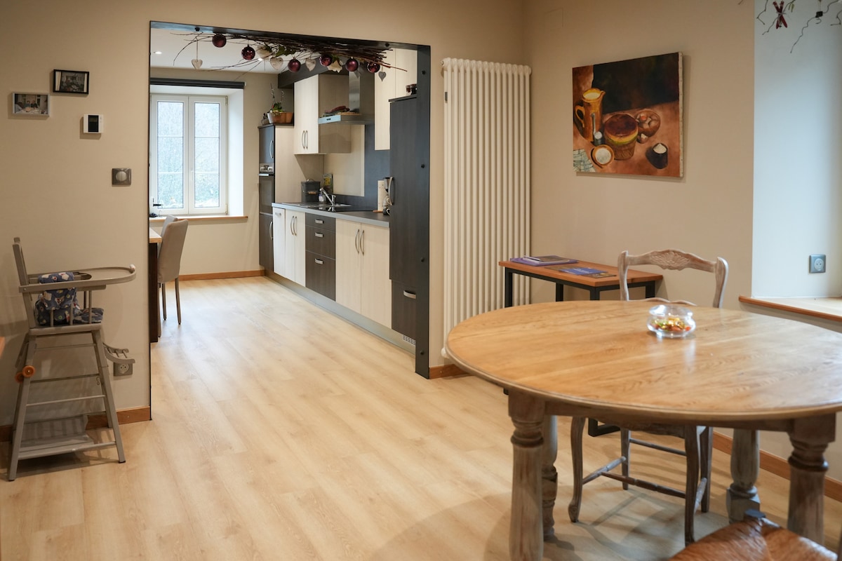Situado en la tranquilidad de un callejón sin salida de un pequeño pueblo bordeado por el bosque , nuestro apartamento dúplex de 80 m2 le dará la bienvenida cómodamente de 4 a 6 personas. ¡Disfrute de la gran terraza de madera con impresionantes vistas del valle boscoso y del pueblo de Enchenberg para tomar el aperitivo o tomar el sol! El apartamento está en el primer y último piso de un edificio cuya planta baja está desocupada. Por lo tanto, no tendrá vecinos directos ni tornillos.