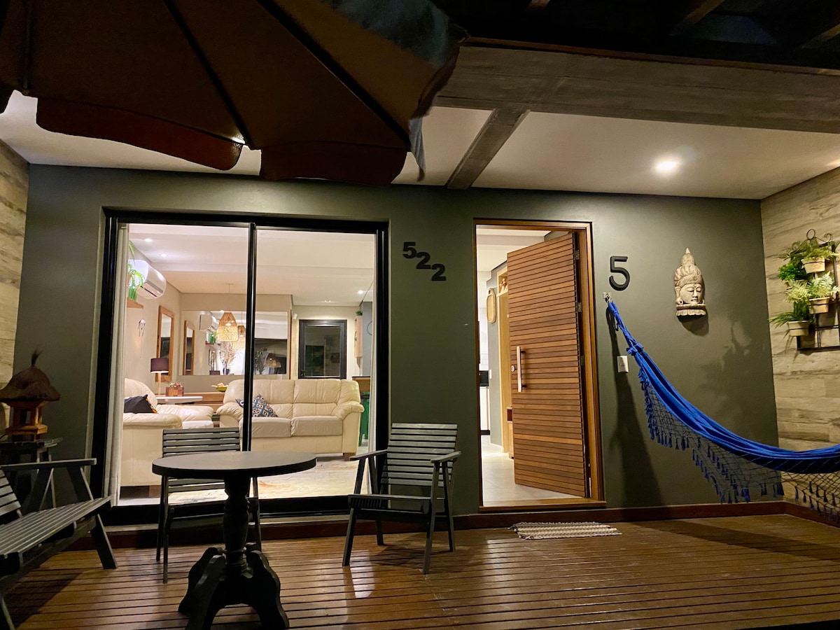 "Ven al Refugio do Ermitão, un oasis exclusivo ubicado en Morro da Ferrugem, rodeado de un bosque tranquilo y con impresionantes vistas del atardecer en la laguna. Perfecto para quienes buscan tranquilidad, lejos del bullicio, pero lo suficientemente cerca de la playa y del centro (a solo 600 metros). Disfrute del sonido de los árboles que se mecen y del canto de los pájaros en un ambiente tranquilo. Disfrute de las comodidades modernas. - Aire acondicionado - TV por cable - Internet de fibra de 600 MB - Ofuro caliente