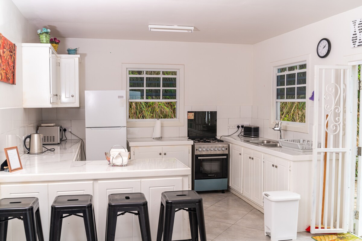 La casa de campo en Villa PassiFlora representa una excelente opción para personas o parejas que no necesitan el espacio de la villa y añade la opción de estancias de menos de 4 noches. La casa de campo se encuentra en la propiedad Villa PassiFlora, rodeada de bosques, árboles frutales y plantas tropicales, con vistas al océano Atlántico a través del bosque. Los huéspedes tienen acceso directo al sendero que conduce a Pointe Baptiste.