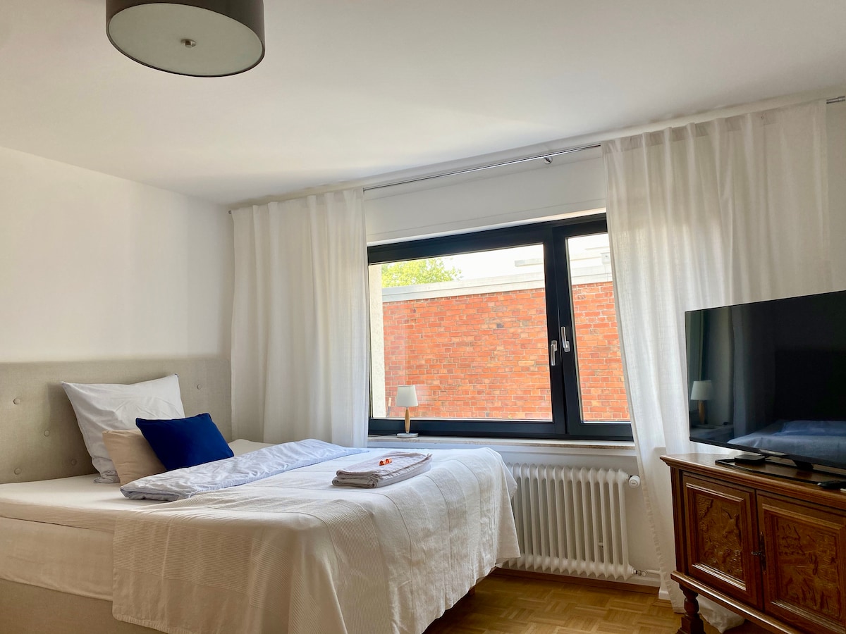 Su alojamiento es una parte separada de nuestra casa y está en el hermoso barrio de un ex oficial estadounidense. Tienes una sala de estar de 35 metros cuadrados con una gran comodidad(!) Sofá cama, nevera, un dormitorio con cama doble (¡solo queen!), así como un baño con ducha y bañera. En el área de entrada hay una cocina de té, platos, cubiertos y vasos, ¡pero NO hay COCINA! Tienes una terraza detrás de la casa y una plaza de aparcamiento justo enfrente de la puerta.