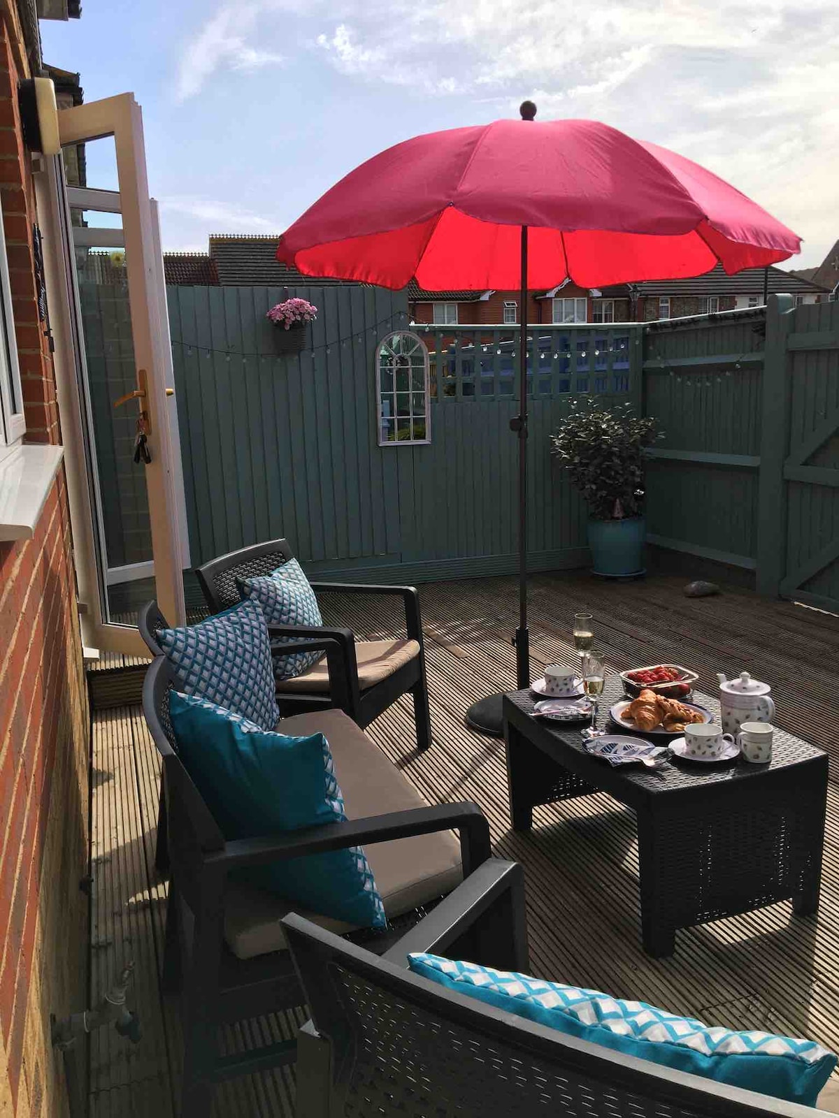 Un dúplex acogedor y elegante con un espacio de estacionamiento asignado en la parte delantera de la propiedad. Hay estacionamiento para visitantes disponible frente a la propiedad, lo que lo hace ideal para los huéspedes que necesitan su propio vehículo para explorar más allá de Eastbourne. La zona es tranquila y residencial y la casa se encuentra detrás de la carretera, lo que da un poco más de privacidad para el pequeño jardín que está al frente de la propiedad. Ten en cuenta que no hay jardín trasero.