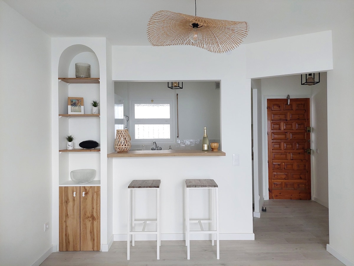 Apartamento a pie de playa, terraza y jardin, wifi