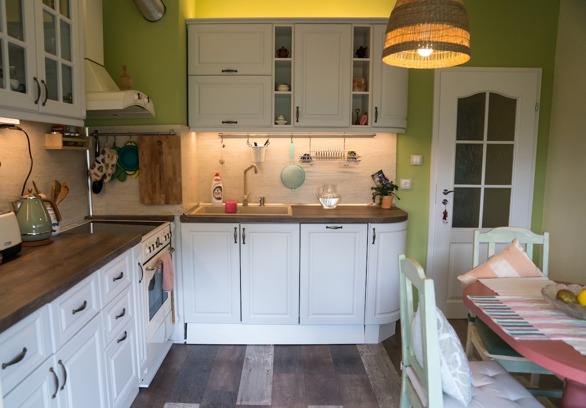 Un acogedor apartamento recién reformado en una zona verde tranquila en las afueras de Sofía. Esta es una casa familiar totalmente amueblada que alquilamos cuando no estamos en casa (cocina totalmente equipada y baño, dormitorio con cama tamaño king y amplia sala de estar con escritorio, sofá y wifi ultrarrápido). El apartamento se encuentra en un edificio residencial en el sexto piso y tiene una terraza abierta con vistas a los alrededores y a la montaña Vitosha. Aparcamiento gratuito en las instalaciones, a 1 minuto a pie de la parada de autobús y a 15 minutos del metro.