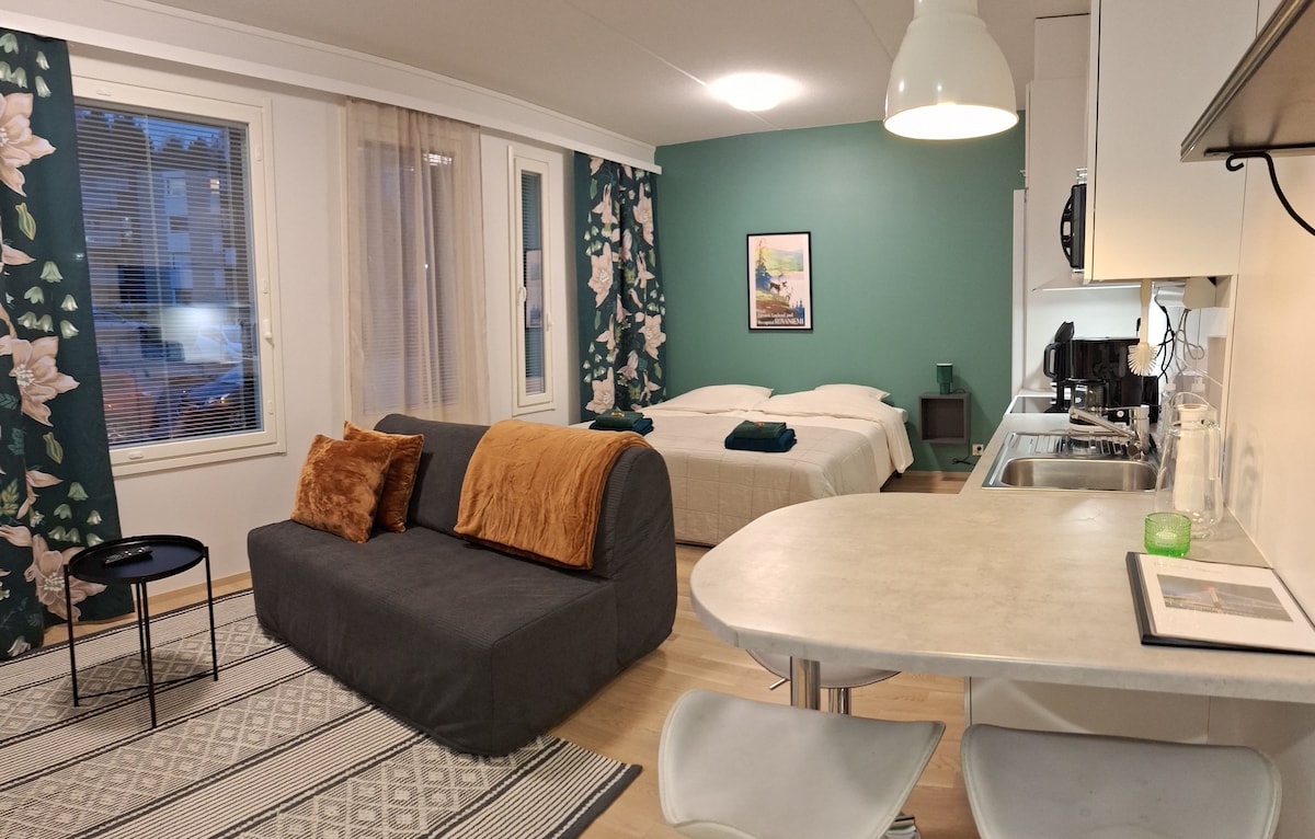 * Apartamento tipo estudio en el corazón de Rovaniemi * Por ejemplo, restaurantes, tiendas, operadores turísticos, información turística a la vuelta de la esquina. * El Círculo Polar Ártico y el pueblo de Santa Claus están a unos 10 kilómetros de distancia (hay una parada de autobús cerca del apartamento) * Garaje de pago en el centro comercial Sampokeskus (aprox. 12 €/día) y junto a la calle de lunes a viernes de 8:00 a 18:00 y sábados de 8:00 a 16:00. Gratis los domingos.
