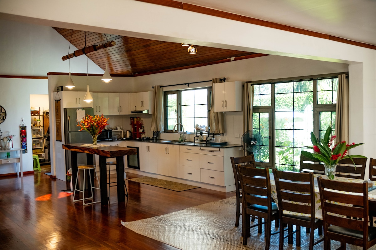 ¡Bula! Esta propiedad da al par 18 del campo de golf Pacific Harbour. A 5 minutos en coche o a 15 minutos a pie llegarás a la playa o a un centro comercial único con auténticas tiendas fiyianas, así como a la base de actividades. Un punto destacado: Naomi, nuestra ejecutiva de la casa, vendrá diariamente para hacer un rápido orden complementario si lo deseas. También, previa solicitud pagada directamente a Naomi, puede cocinar kana (comida) fiyiana, cuidar niños, hacer masajes asegurándose de que tengas unas vacaciones verdaderamente relajantes. 🌴🥥