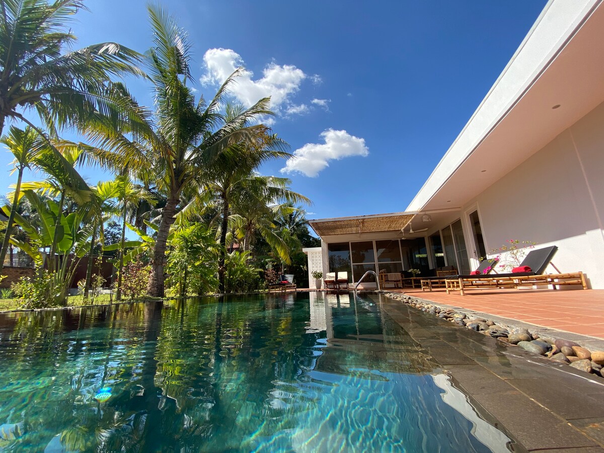 Villa privada jemer con piscina natural y jardín