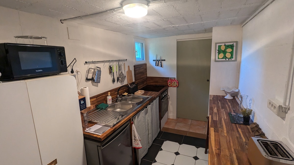 Te damos la bienvenida en el edificio anexo de nuestra casa. Viviendas nuevas e independientes que consta de: - De 1 dormitorio con 2 camas individuales + mesa + TV. - De 1 dormitorio con 2 camas individuales + mesa + TV. - 1 cocina pequeña para preparar el almuerzo y comidas sencillas (nevera pequeña, vitrocerámica, lavabo, microondas) - 1 baño con ducha a ras del suelo. - 1 WC privado - plazas de aparcamiento privado - garaje para la recolección/autos de carreras por un costo adicional. Entrada independiente desde el exterior para cada habitación.