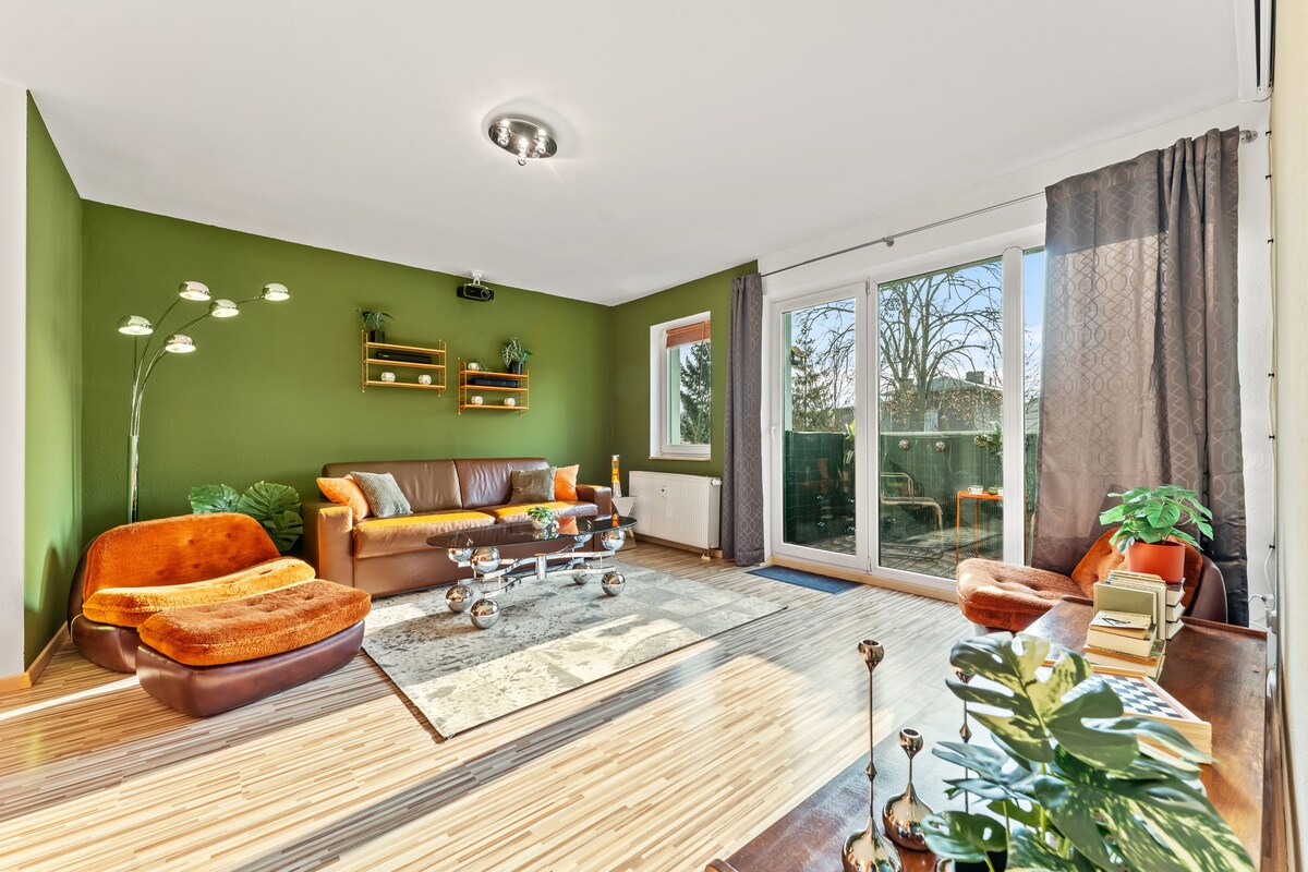 Disfruta de tus vacaciones en nuestro apartamento cerca de la naturaleza a las puertas de Berlín. Justo en la cerradura Woltersdorfer, este apartamento único con estilo de era espacial y piezas de diseño seleccionadas te espera. En 67 metros cuadrados hay 5 lugares para dormir, un balcón, una cocina totalmente equipada, un baño y, como punto culminante especial, un proyector con lona de 117 pulgadas. Perfecto para familias y grupos pequeños. Disfruta de la naturaleza y la tranquilidad, mientras que Berlín está a un tiro de piedra.