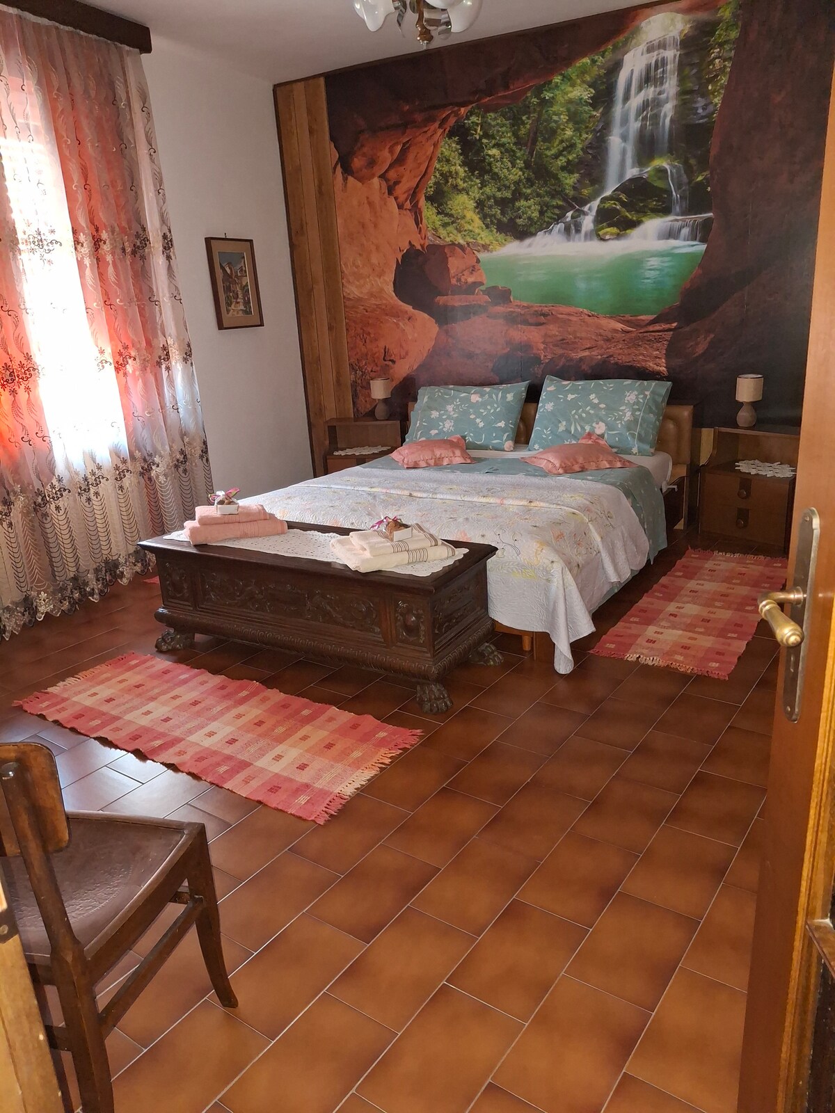 Nuestra casa, entre los árboles, vive en un apacible aislamiento a un par de kilómetros de la localidad más cercana. Somos Riccardo, Cristina, Lorenzo, Bianca y Alice. Elegimos venir aquí, al bosque, para empezar a vivir una vida sencilla pero plena, aprendiendo de la naturaleza. Les ofrecemos un ático abuhardillado renovado con esmero por Riccardo, con cama doble, sofá cama (ambos bajo lucernarios), cocina americana, baño y una amplia vista al valle.