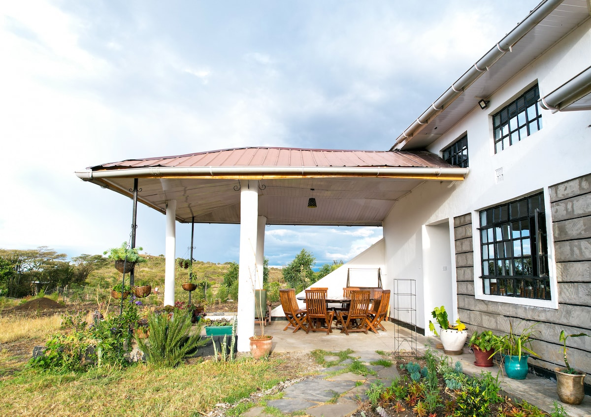 Escapada familiar perfecta en una casa de campo tranquila. Ubicado en la línea del ecuador, (hemisferio norte y sur). Esta casa de campo ofrece habitaciones cómodas para que tu gran familia o amigos se reúnan. Viene con un hermoso jardín tranquilo adecuado para bodas en el jardín y fiestas privadas. El jardín tiene un espacio divertido, con una fogata exterior para reuniones nocturnas o vigilias nocturnas, mientras contemplas las estrellas. Está cerca de las cataratas Nyahururu, el lago Olbolosat y con vistas a las cordilleras de Aberdare. ¡Karibu!