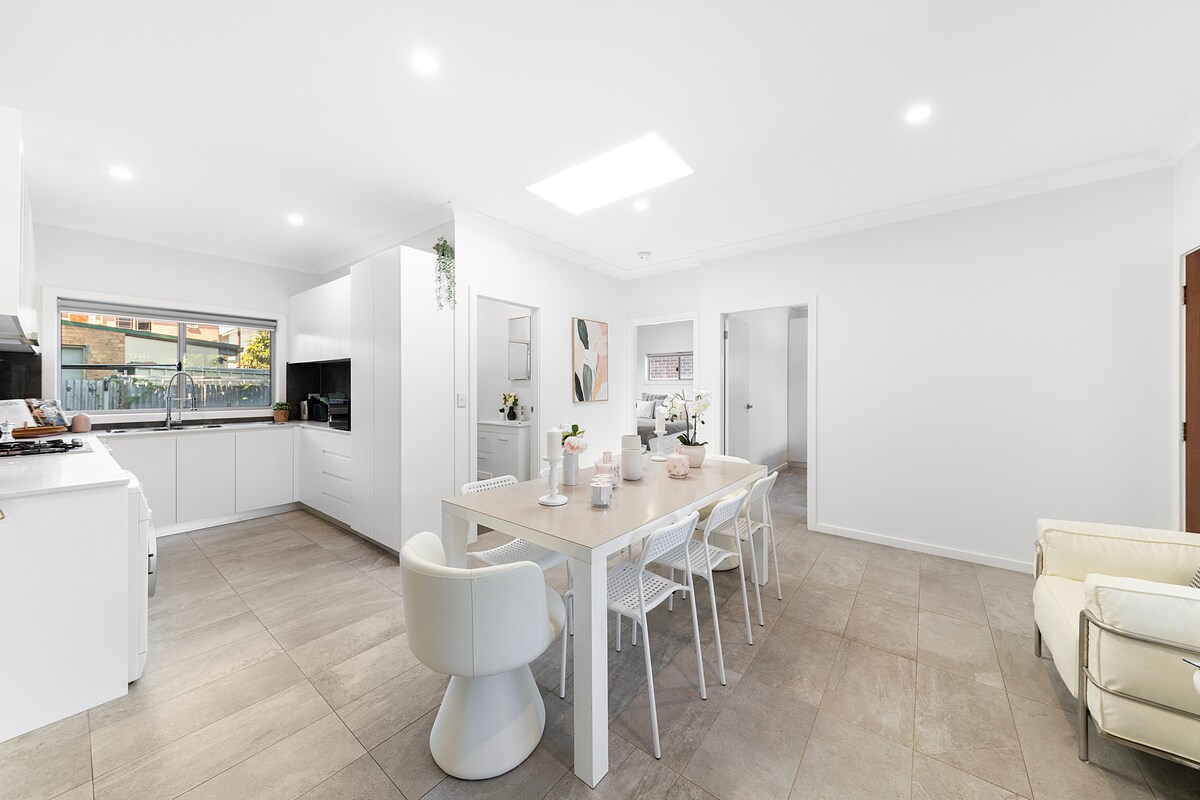 Relájate en un espacioso y encantador apartamento de 4 dormitorios (con capacidad para 9 personas) con 3 camas tamaño queen, 1 cama doble y 1 cama individual. Los 2 baños están equipados con bidé y secador de pelo para mayor comodidad. Cuenta con entrada independiente y un enorme patio trasero con espacio de estacionamiento para 4 autos. A 5 minutos en coche del centro comercial Eastwood. A 5 minutos en auto del Hospital Ryde. A 10 minutos en coche del centro comercial Ryde y Macquarie. Se admiten mascotas, pero ponte en contacto conmigo primero para hablar.