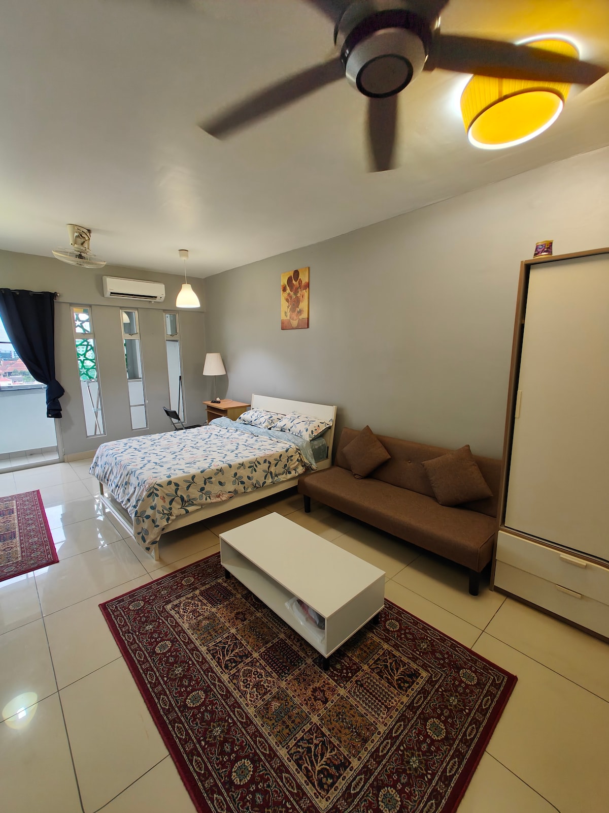 Alójate en el corazón de Kota Bharu y disfruta de la máxima comodidad. Ubicado a pocos pasos del centro comercial KB y UTC, puedes comprar, cenar y acceder a lo esencial sin necesidad de un automóvil. Rodeado de muchas opciones gastronómicas. Esta unidad totalmente amueblada y con aire acondicionado cuenta con una cama tamaño queen, sofá cama, televisor inteligente de 43 pulgadas, lavadora, nevera, plancha, balcón e Internet de fibra de alta velocidad de 100 Mbps, perfecto para trabajar o alojarse.