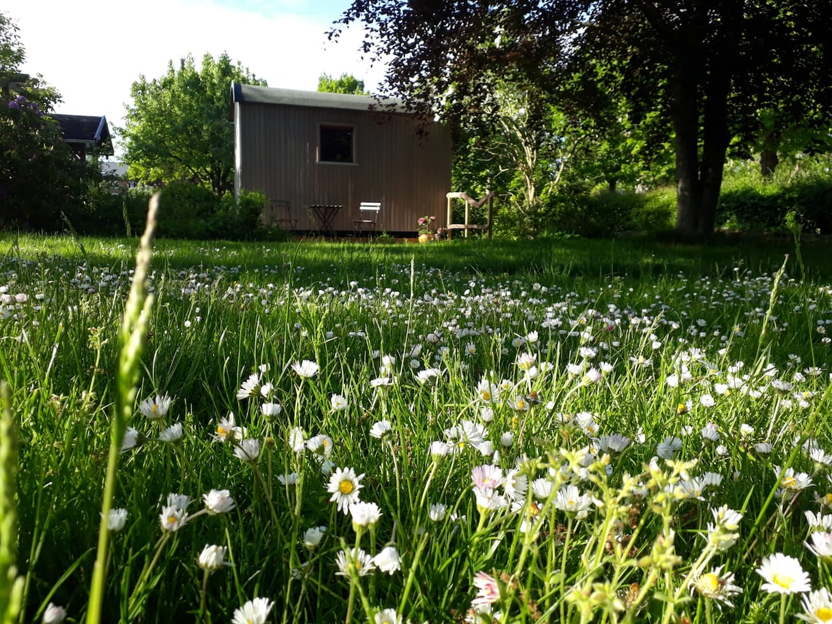 ¡Escapa de la vida cotidiana y disfruta de la naturaleza y la vida del pueblo! Alquilamos nuestro remolque de construcción convertido con cariño a personas agradables y amantes de la naturaleza. El remolque de construcción está equipado para 2 personas: hay una acogedora cama de 1,60 m de ancho, una mesa pequeña con 2 sillas y una esquina de cocina. Para ir al baño y al fregadero al aire libre, tienes que caminar unos metros a través del jardín. ¡Puedes relajarte en la terraza y en el jardín o hacer agradables excursiones desde aquí!
