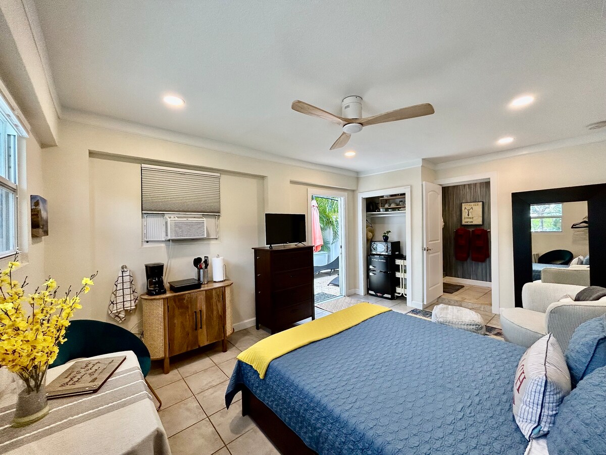 ¡Ven y disfruta de una experiencia local, pero con la privacidad de tu propio estudio! Suite de invitados completamente renovada en un barrio tranquilo y familiar. Todo nuevo, ducha de cascada de lujo, cómoda cama tamaño king, TV inteligente (sin cable), cocina americana (ten en cuenta que no hay horno ni fogones), con mininevera, microondas, fregadero, quemador eléctrico, parrilla eléctrica y tu propia lavadora y secadora. ¡Zona privada al aire libre! Los anfitriones son lugareños de Deerfield Beach y están justo al lado para ayudarte en lo que necesites.