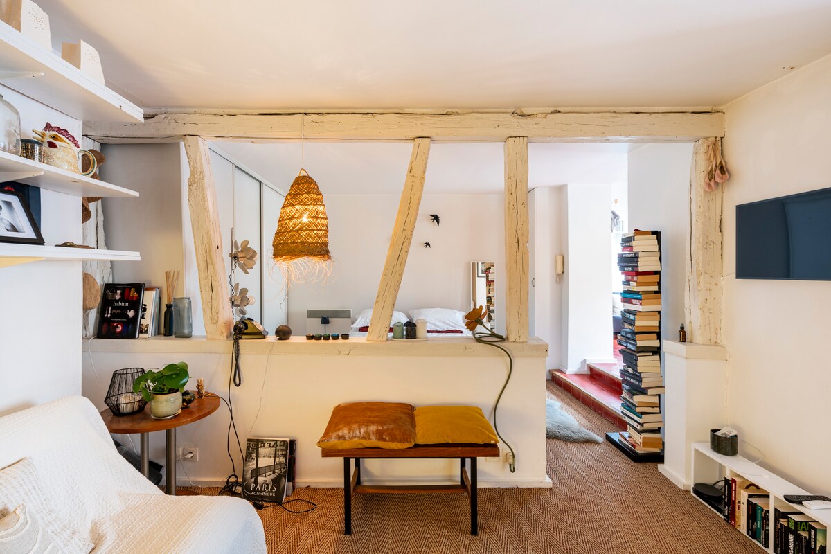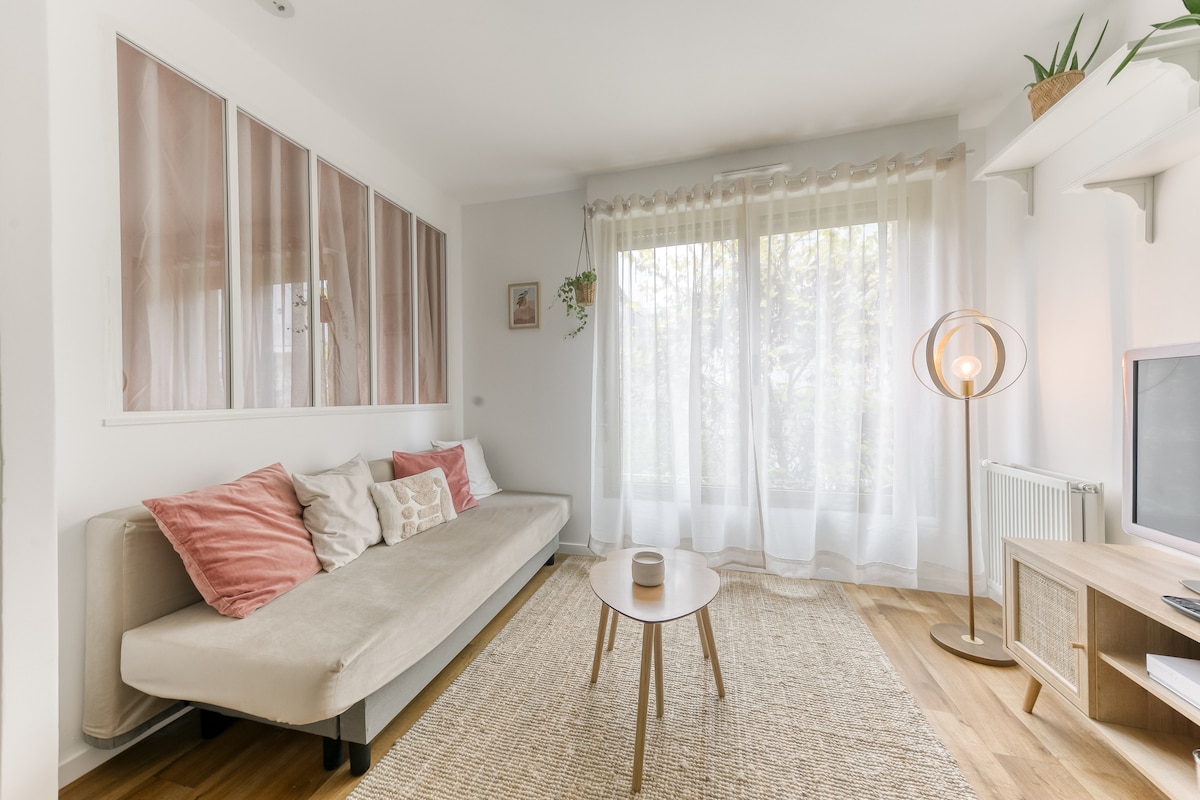 Un hermoso apartamento de una habitación, renovado y espacioso, con vista a un patio privado. Perfecto para 2 a 5 personas. El dormitorio tiene un colchón de calidad de 140x200, y la sala cuenta con un sofá cama para 2 personas. (colchón adicional disponible bajo petición). La guinda del pastel: una sauna privada para relajarse después de un día explorando París. No tiene aire acondicionado, pero es muy fresco en verano. A pasos de París. A 30 minutos del centro y de los aeropuertos.