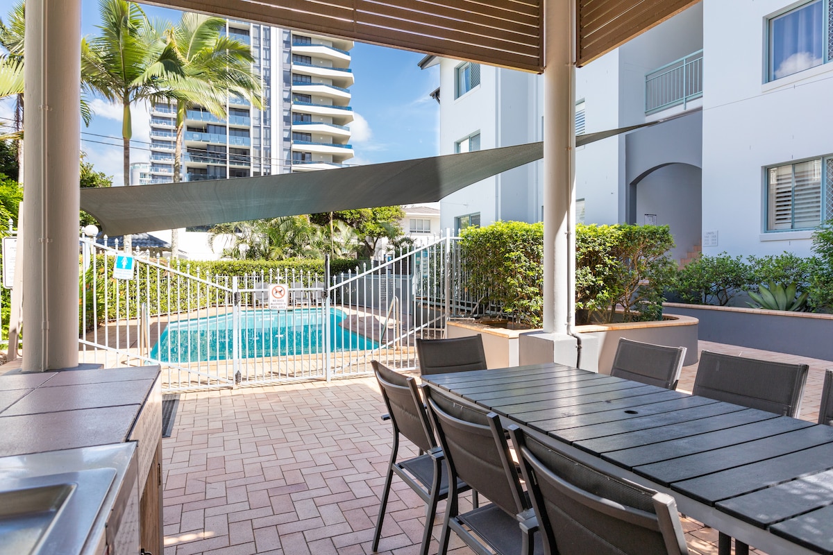 Relax, unwind, and enjoy the best of Kirra in this stylish beachside escape. 🌴 Steps away from Kirra's pristine beach, vibrant cafes, Surf clubs & Restaurants. This modern apartment offers everything you need, including a resort style pool, air conditioning, a bright open plan living area with Netflix & WiFi. Unwind on the balcony with panoramic views stretching along the coastline. A secure car space makes parking a breeze and located only five minutes from Gold Coast Airport.