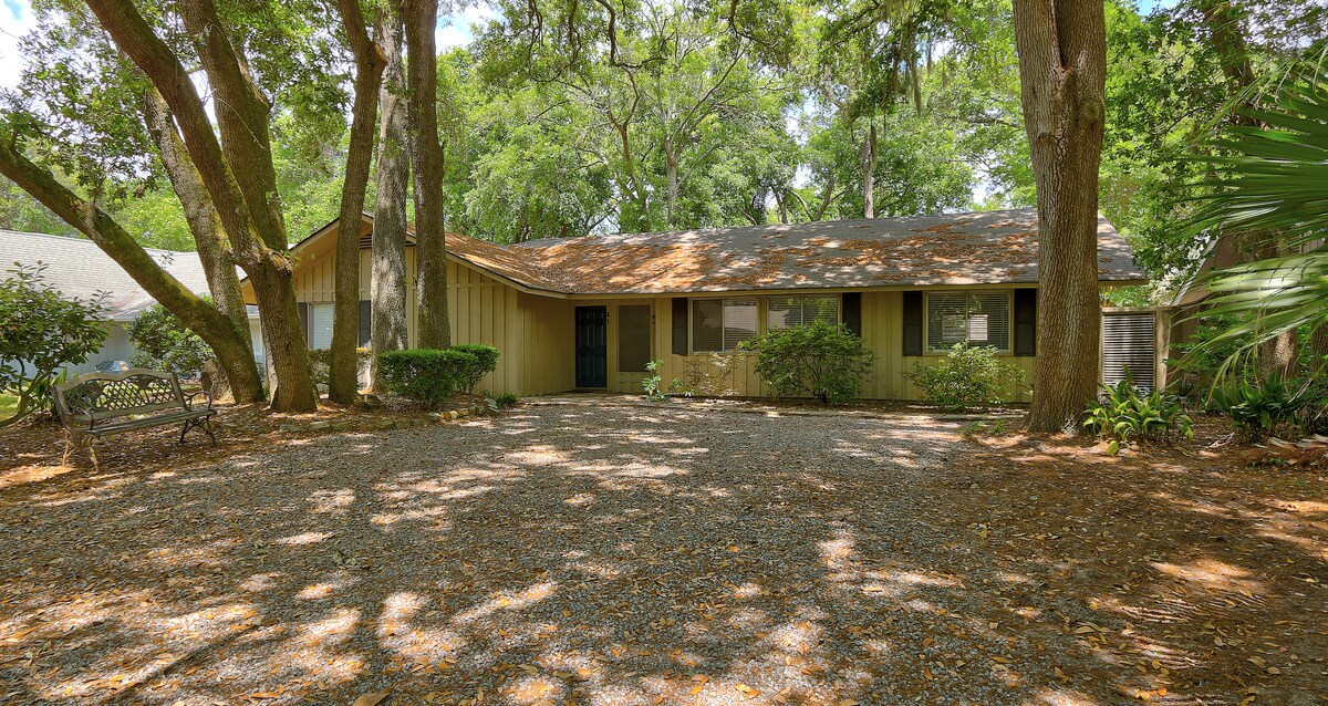 ✨El 10 % de los huéspedes lo prefieren✨ - Complejo turístico cerrado frente a la playa: ¡golf, tenis, pickleball, piscina, restaurantes y bares! - ¡Preciosa villa soleada con vistas panorámicas a la laguna y al campo de golf! - Paisaje hermoso y exuberante: ¡enormes robles antiguos cubiertos de musgo español! - A pie o en bicicleta hasta la playa ●¡Camina hasta el Shipyard Golf Club & Pub! ● Costero moderno ●Soleado primer piso ●CAMA TAMAÑO KING PRINCIPAL ●3 televisores inteligentes XL ● Wifi de 287 Mbps ●Cocina totalmente abastecida ●Ducha a ras de suelo ●Lavadora/Secadora. ¡●Sillas de playa, tablas de boogie y mucho más! ● Parrilla ● Senderos para bicicletas y caminatas ●¡Cerca de Coligny!