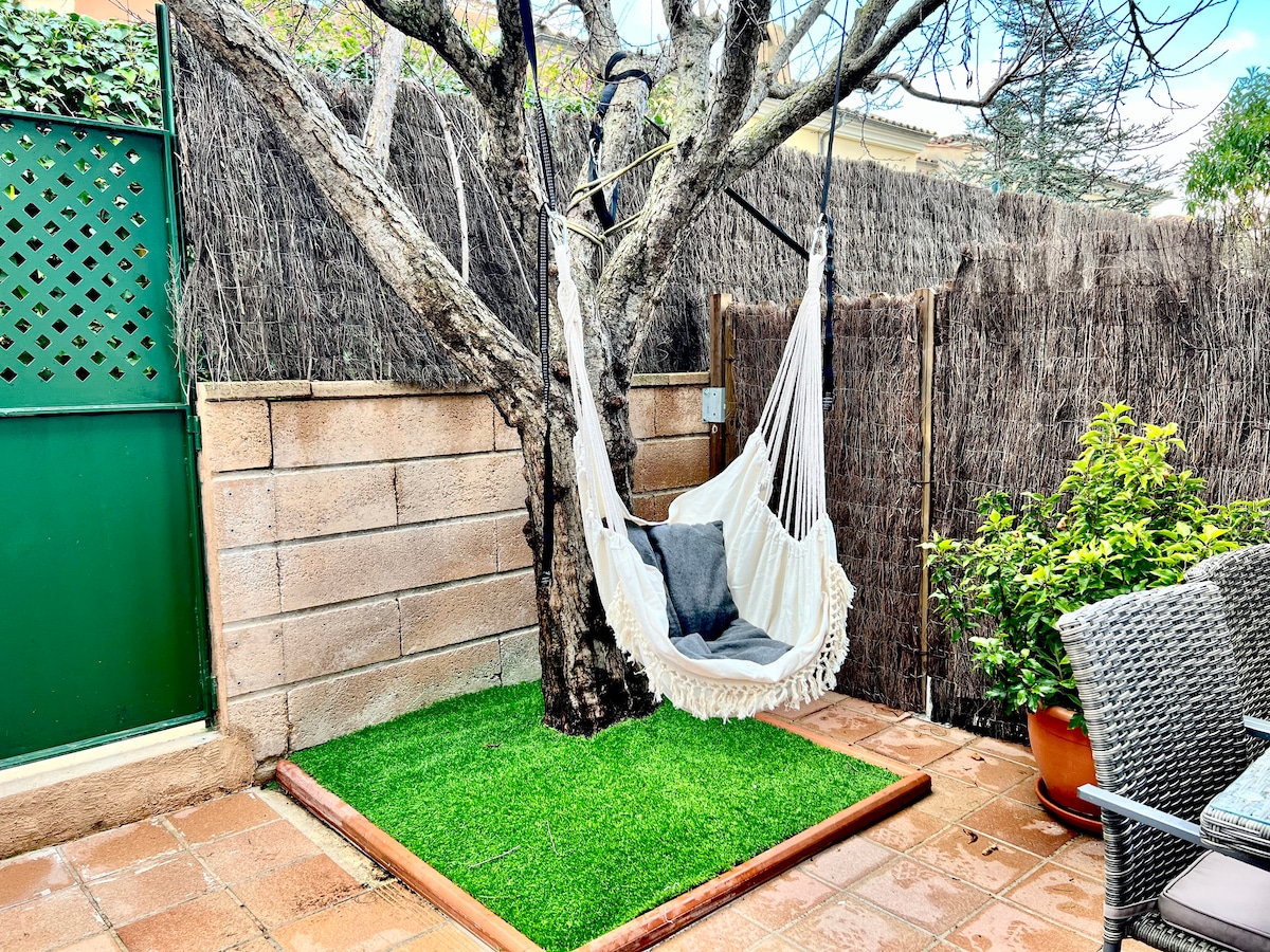 Rompe con tu día a día y relájate en este oasis de tranquilidad. Después de un día intenso de trabajo, relájate en el jardín o la piscina. Apartamento totalmente equipado a los pies de la Serra de Tramuntana, ideal para dos personas (máximo cuatro gracias a su sofá cama). Independiente y con acceso privado en la misma propiedad compartiendo sólo la entrada de la calle, jardines y piscina. Estancias no turísticas (visitas familiares, bodas, eventos deportivos o consultas médicas).